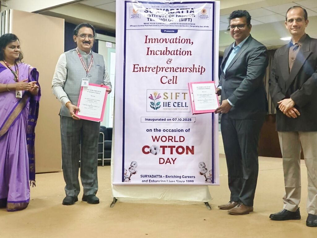पुणे : सूर्यदत्त इन्स्टिट्यूट ऑफ फॅशन टेक्नॉलॉजीतर्फे ‘कॉटन कनेक्ट 2025 – फ्रॉम ट्रेडिशन टू इनोव्हेशन’ हा उपक्रम उत्साहात पार पडला. ‘Make in India’ ला प्रोत्साहन देत कापसाचा वारसा, फॅशन क्षेत्रातील नवकल्पना आणि स्थानिक उद्योगांची व्याप्ती विद्यार्थ्यांना प्रत्यक्ष अनुभवता आली.