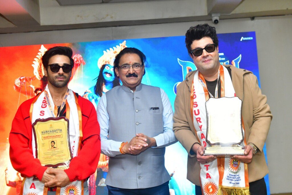 पुणे : सूर्यदत्त ग्रुप ऑफ इन्स्टिट्यूशन्सच्या ‘सूर्यदत्त इन्स्टिट्यूट ऑफ परफॉर्मिंग आर्ट्स’ (SIPA) तर्फे आयोजित मेगा कॅम्पस इव्हेंटमध्ये बॉलिवूडमधील लोकप्रिय आणि विनोदी अभिनयासाठी प्रसिद्ध असलेले कलाकार पुलकित सम्राट व वरुण शर्मा यांनी हजेरी लावली. त्यांच्या आगमनाने सूर्यदत्त कॅम्पस अक्षरशः उत्साहाने भारावून गेला होता. यावेळी आयोजित विशेष संवादात्मक सत्रात या कलाकारांनी विद्यार्थ्यांशी दिलखुलास गप्पा मारत आपला अभिनय प्रवास उलगडला, ज्यामुळे संपूर्ण परिसरात जल्लोषाचे वातावरण निर्माण झाले होते.