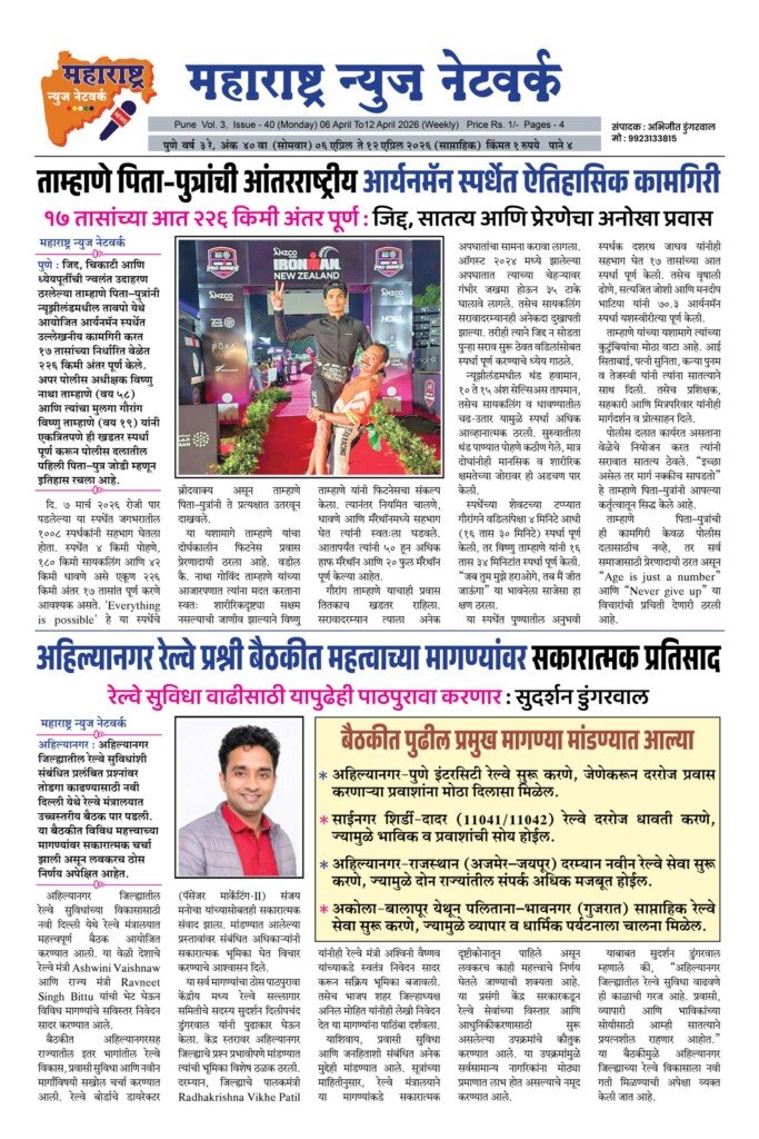 ← Back to Homepage Maharashtra News Network Weekly 06 AprilTo 12 April 2026 adminuser • Uncategorized • April 20, 2026 📥 Download News PDF महाराष्ट्र न्यूज नेटवर्क [dearpdf id=”45649″ ][/dearpdf]